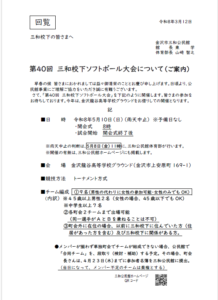 「第40回三和校下ソフトボール大会」ご案内と要項をアップしました。
