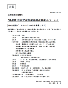 三和公民館事務職員 再募集≪パート≫ のお知らせをアップしました。