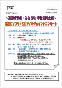 高齢者学級・SDGs学級合同企画「篠笛とソプラノとピアノのジョイントコンサート」をアップしました。案内をアップしました。