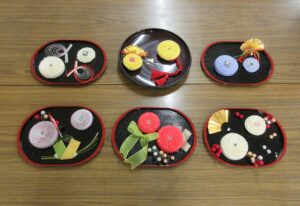 お盆に飾り付けをすると、こんなにきれいな作品が完成しました!