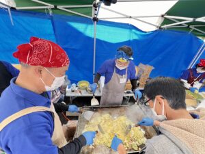 総務部と青少年対策部による「やきそば」です。キャベツがシャキシャキだと、毎年大好評です!