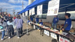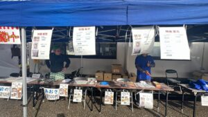 昨年に引き続き「能登応援コーナー」です。今年は「能登のお酒・ワイン」「がんばろう能登どら焼き」「能登の岩のり・青のり」に加えて「輪島朝市せんべい」や、能登の海産物・しいたけなどをたくさん揃え販売しました。
