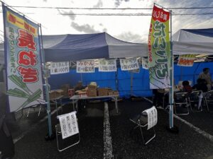 また「三和児童館母親クラブ」の皆さまは、恒例の「フランクフルト」と飲物担当です。今年は「野菜販売」も加わりました。