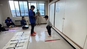 三和公民館体育部による恒例の「体力測定」、今年は会場を例年通りの会議室で行いました。