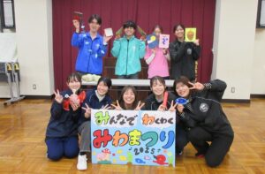 令和7年11月26日(水)、「三和あそびの城」に今年も北陸学院大学のおにいさん、おねえさんが遊びにきてくださいました。今年のテーマは「みんなでわくわくみわまつり2025」です。三和公民館に到着したおにいさん、おねえさんたちは、早速準備にとりかかりました。この日は、4つのゲームがありました。