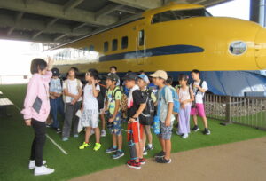 ドクターイエローの役割をクイズ形式で学びましたが、子どもたちも良く知っていたようです。さらには北陸新幹線の歴史や技術を学べる展示や、運転シミュレータ、そして、新幹線を間近に見られる展望デッキでは「かがやき」をしっかり見ることができたと喜んでいました。