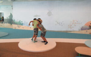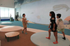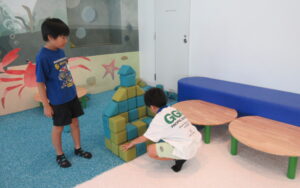 お待ちかねの 3F「こどもあそびエリア」では、朝からず~っとお勉強?をしてきた子どもたちにとっては、ようやくのびのびできる時です。「走ったらいけません」のお約束はしっかりと守りながら、本当に楽しそうに過ごしていました。