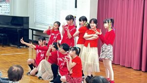 最初の曲は、高学年の皆さんによる「Take a picture(NiziU)」(高学年)・「歯ラ歯ラ(しなこ)」(低学年)・「FLY(MADKID)」(低学年)です。